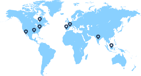 USA (Los Angeles, Dallas, New York)Canada (Montreal)Europe (Frankfurt, Amsterdam)Asia (Singapore, India)